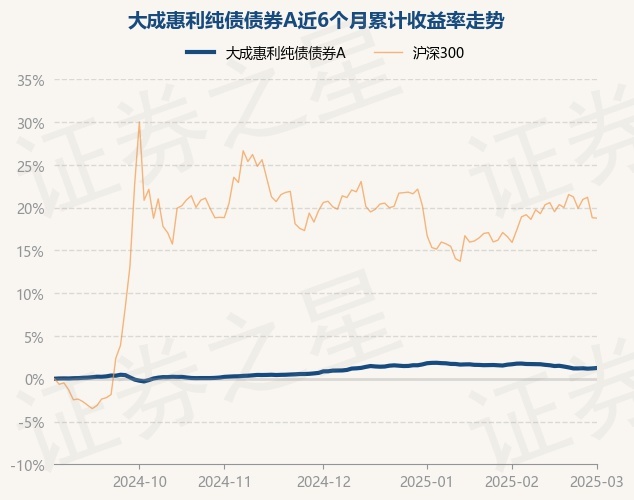 证券之星消息,3月3日,大成惠利纯债债券A最新单位净值为1.0151元,累计净值为1.305元,较前一交易日上涨0.05%。历史数据显示该基金近1个月下跌0.38%,近3个月上涨0.38%,近6个月上涨1.25%,近1年上涨3.18%。该基金近6个月的累计收益率走势如下图: