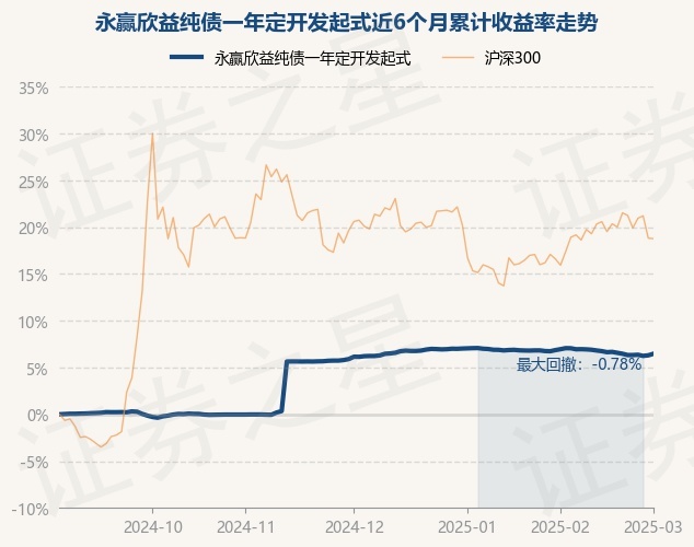证券之星消息,3月3日,永赢欣益纯债一年定开发起式最新单位净值为1.0709元,累计净值为1.2207元,较前一交易日上涨0.16%。历史数据显示该基金近1个月下跌0.36%,近3个月上涨0.31%,近6个月上涨6.47%,近1年上涨8.85%。该基金近6个月的累计收益率走势如下图: