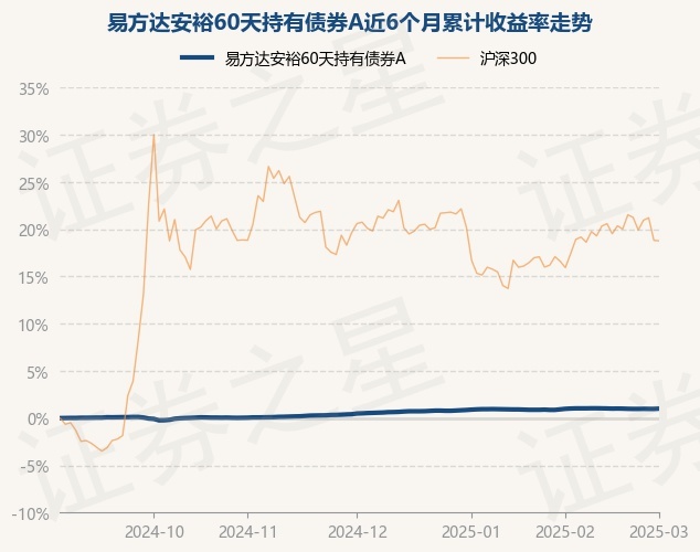 证券之星消息,3月3日,易方达安裕60天持有债券A最新单位净值为1.0564元,累计净值为1.0564元,较前一交易日上涨0.03%。历史数据显示该基金近1个月上涨0.08%,近3个月上涨0.49%,近6个月上涨1.0%,近1年上涨2.36%。该基金近6个月的累计收益率走势如下图: