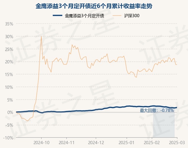 证券之星消息,3月3日,金鹰添益3个月定开债最新单位净值为1.1288元,累计净值为1.3335元,较前一交易日上涨0.12%。历史数据显示该基金近1个月下跌0.45%,近3个月上涨0.82%,近6个月上涨1.83%,近1年上涨3.99%。该基金近6个月的累计收益率走势如下图: