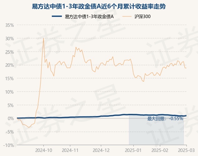 证券之星消息,3月3日,易方达中债1-3年政金债A最新单位净值为1.0012元,累计净值为1.1576元,较前一交易日上涨0.11%。历史数据显示该基金近1个月下跌0.28%,近3个月上涨0.21%,近6个月上涨0.96%,近1年上涨2.71%。该基金近6个月的累计收益率走势如下图:
