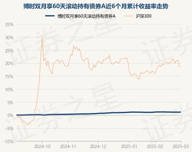 证券之星消息,3月3日,博时双月享60天滚动持有债券A最新单位净值为1.1252元,累计净值为1.1252元,较前一交易日上涨0.04%。历史数据显示该基金近1个月上涨0.05%,近3个月上涨0.51%,近6个月上涨1.19%,近1年上涨2.83%。该基金近6个月的累计收益率走势如下图: