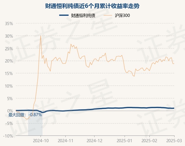 证券之星消息,3月3日,财通恒利纯债最新单位净值为1.0561元,累计净值为1.1586元,较前一交易日上涨0.04%。历史数据显示该基金近1个月下跌0.18%,近3个月上涨0.29%,近6个月上涨0.96%,近1年上涨3.16%。该基金近6个月的累计收益率走势如下图: