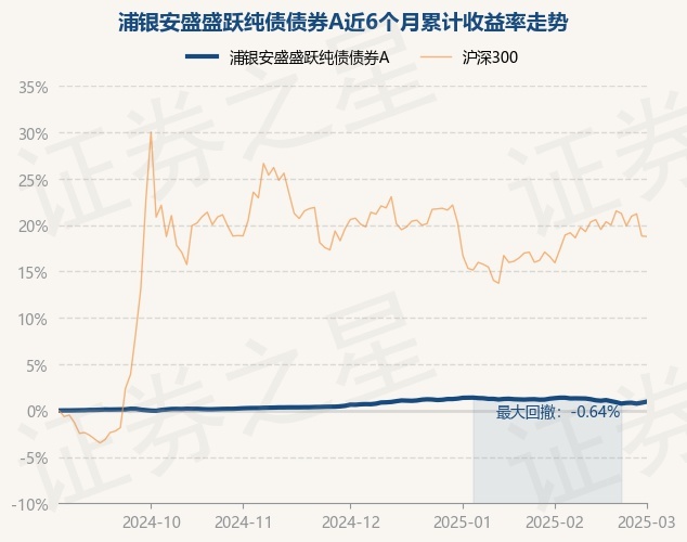 证券之星消息,3月3日,浦银安盛盛跃纯债债券A最新单位净值为1.0505元,累计净值为1.3187元,较前一交易日上涨0.11%。历史数据显示该基金近1个月下跌0.31%,近3个月上涨0.33%,近6个月上涨0.96%,近1年上涨2.08%。该基金近6个月的累计收益率走势如下图: