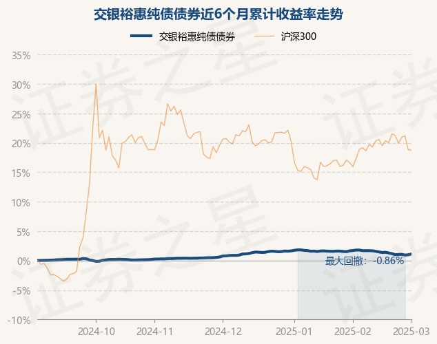 证券之星消息,3月3日,交银裕惠纯债债券最新单位净值为1.1323元,累计净值为1.1323元,较前一交易日上涨0.12%。历史数据显示该基金近1个月下跌0.54%,近3个月上涨0.31%,近6个月上涨1.11%,近1年上涨3.28%。该基金近6个月的累计收益率走势如下图: