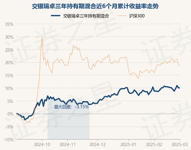证券之星消息,3月3日,交银瑞卓三年持有期混合最新单位净值为0.9449元,累计净值为0.9449元,较前一交易日上涨0.0%。历史数据显示该基金近1个月下跌0.33%,近3个月上涨4.73%,近6个月上涨10.03%,近1年上涨11.92%。该基金近6个月的累计收益率走势如下图: