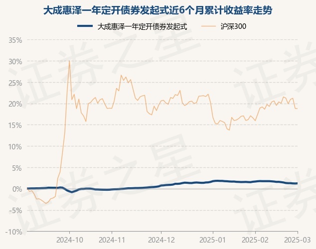 证券之星消息,3月3日,大成惠泽一年定开债券发起式最新单位净值为1.0271元,累计净值为1.1323元,较前一交易日上涨0.04%。历史数据显示该基金近1个月下跌0.36%,近3个月上涨0.47%,近6个月上涨1.24%,近1年上涨3.46%。该基金近6个月的累计收益率走势如下图: