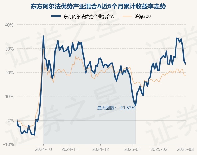 证券之星消息,3月3日,东方阿尔法优势产业混合A最新单位净值为1.2682元,累计净值为1.2682元,较前一交易日下跌0.98%。历史数据显示该基金近1个月上涨2.23%,近3个月下跌0.61%,近6个月上涨23.51%,近1年上涨13.72%。该基金近6个月的累计收益率走势如下图: