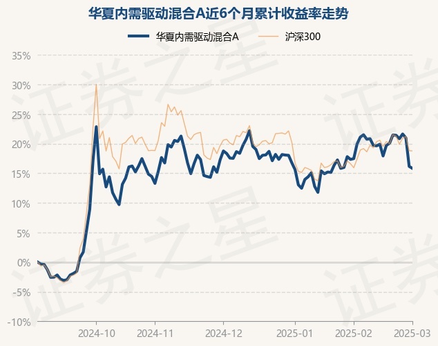 证券之星消息,3月3日,华夏内需驱动混合A最新单位净值为0.5203元,累计净值为0.5203元,较前一交易日下跌0.29%。历史数据显示该基金近1个月下跌1.29%,近3个月下跌2.13%,近6个月上涨15.83%,近1年上涨7.19%。该基金近6个月的累计收益率走势如下图: