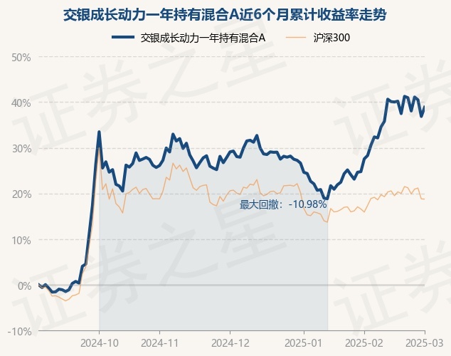 证券之星消息,3月3日,交银成长动力一年持有混合A最新单位净值为0.7543元,累计净值为0.7543元,较前一交易日上涨1.48%。历史数据显示该基金近1个月上涨11.3%,近3个月上涨7.42%,近6个月上涨38.89%,近1年上涨34.07%。该基金近6个月的累计收益率走势如下图: