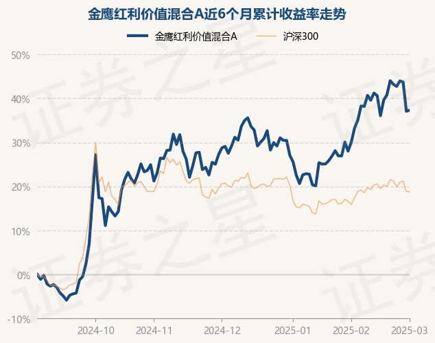 证券之星消息,3月3日,金鹰红利价值混合A最新单位净值为2.1614元,累计净值为3.9739元,较前一交易日上涨0.17%。历史数据显示该基金近1个月上涨7.26%,近3个月上涨6.36%,近6个月上涨37.32%,近1年上涨30.26%。该基金近6个月的累计收益率走势如下图: