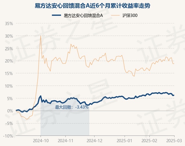 证券之星消息,3月3日,易方达安心回馈混合A最新单位净值为2.367元,累计净值为2.367元,较前一交易日上涨0.08%。历史数据显示该基金近1个月下跌0.5%,近3个月上涨2.73%,近6个月上涨6.14%,近1年上涨4.0%。该基金近6个月的累计收益率走势如下图: