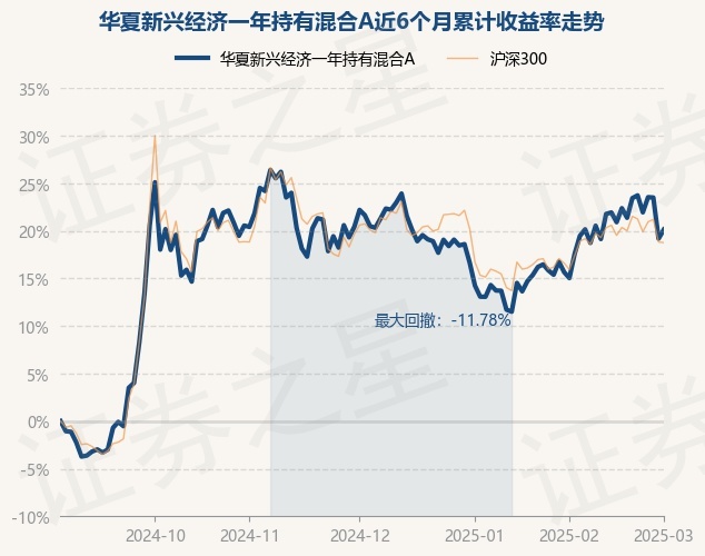 证券之星消息,3月3日,华夏新兴经济一年持有混合A最新单位净值为0.9421元,累计净值为0.9421元,较前一交易日上涨0.8%。历史数据显示该基金近1个月上涨3.87%,近3个月下跌1.25%,近6个月上涨20.14%,近1年上涨20.98%。该基金近6个月的累计收益率走势如下图: