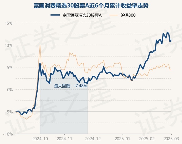 证券之星消息,3月3日,富国消费精选30股票A最新单位净值为0.9007元,累计净值为0.9007元,较前一交易日上涨0.37%。历史数据显示该基金近1个月上涨7.67%,近3个月上涨13.98%,近6个月上涨32.05%,近1年上涨34.45%。该基金近6个月的累计收益率走势如下图: