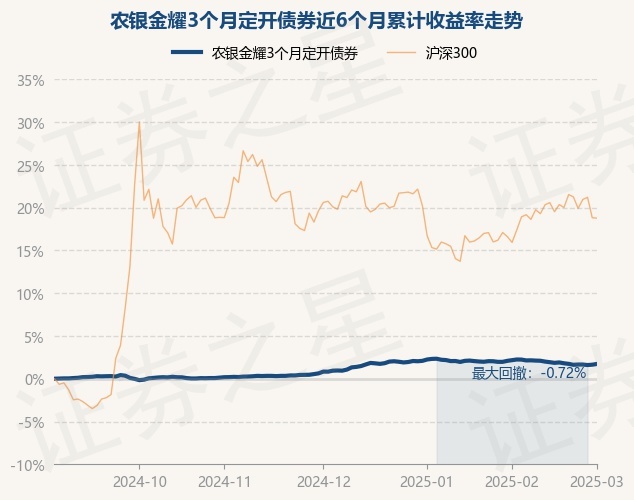 农银金耀3个月定开债券为债券型-长债基金,根据最新一期基金季报显示,该基金资产配置:无股票类资产,债券占净值比100.87%,现金占净值比0.03%。