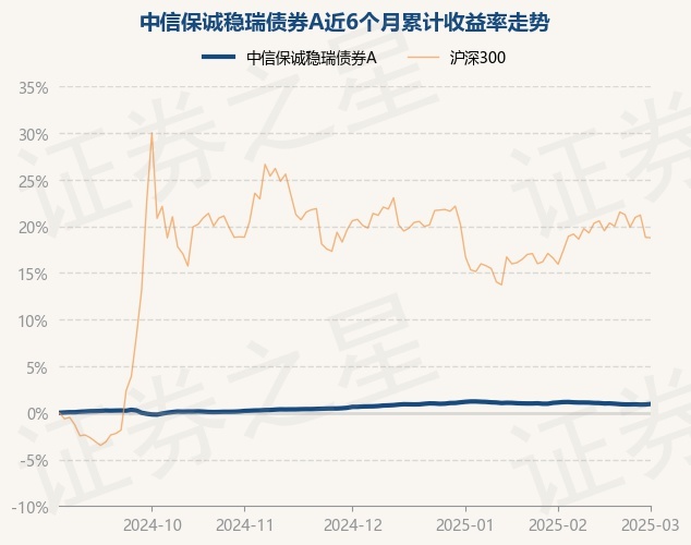 证券之星消息,3月3日,中信保诚稳瑞债券A最新单位净值为1.0887元,累计净值为1.2614元,较前一交易日上涨0.06%。历史数据显示该基金近1个月下跌0.12%,近3个月上涨0.3%,近6个月上涨0.95%,近1年上涨2.56%。该基金近6个月的累计收益率走势如下图: