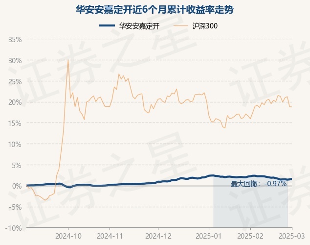 证券之星消息,3月3日,华安安嘉定开最新单位净值为1.0421元,累计净值为1.2001元,较前一交易日上涨0.12%。历史数据显示该基金近1个月下跌0.55%,近3个月上涨0.69%,近6个月上涨1.59%,近1年上涨3.95%。该基金近6个月的累计收益率走势如下图: