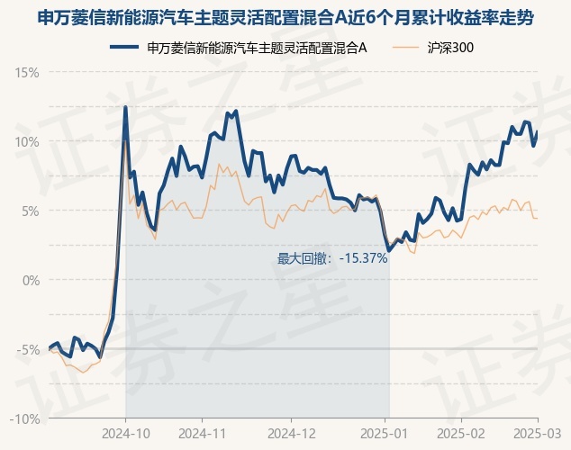 证券之星消息,3月3日,申万菱信新能源汽车主题灵活配置混合A最新单位净值为1.665元,累计净值为2.655元,较前一交易日上涨1.52%。历史数据显示该基金近1个月上涨10.78%,近3个月上涨2.65%,近6个月上涨31.21%,近1年上涨25.28%。该基金近6个月的累计收益率走势如下图: