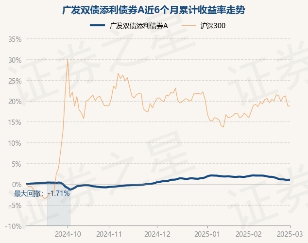 证券之星消息,3月3日,广发双债添利债券A最新单位净值为1.2238元,累计净值为1.6563元,较前一交易日上涨0.04%。历史数据显示该基金近1个月下跌0.77%,近3个月上涨0.52%,近6个月上涨1.04%,近1年上涨3.9%。该基金近6个月的累计收益率走势如下图: