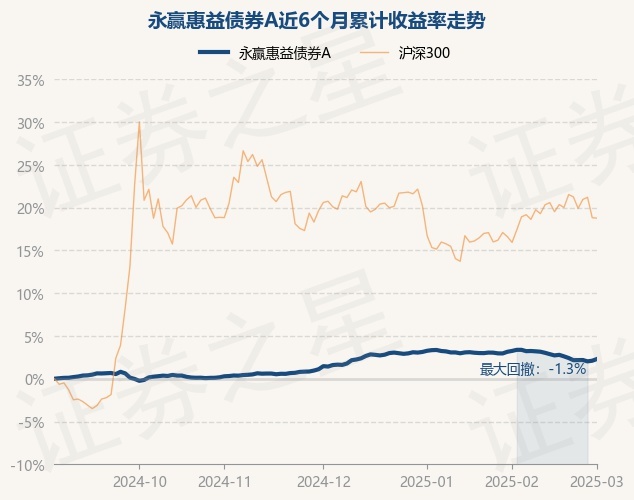 证券之星消息,3月3日,永赢惠益债券A最新单位净值为1.1025元,累计净值为1.2769元,较前一交易日上涨0.2%。历史数据显示该基金近1个月下跌0.81%,近3个月上涨0.87%,近6个月上涨2.31%,近1年上涨5.53%。该基金近6个月的累计收益率走势如下图:
