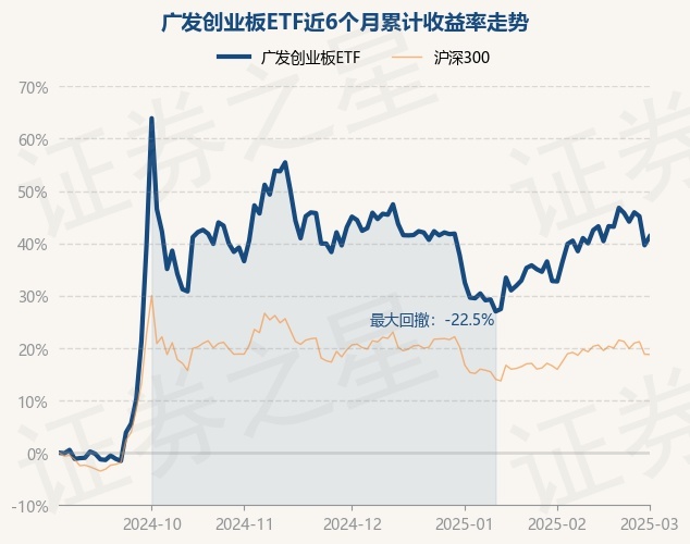 证券之星消息,3月3日,广发创业板ETF最新单位净值为1.3166元,累计净值为1.3166元,较前一交易日上涨1.2%。历史数据显示该基金近1个月上涨6.41%,近3个月下跌2.17%,近6个月上涨41.31%,近1年上涨21.96%。该基金近6个月的累计收益率走势如下图: