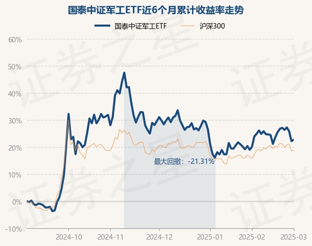 证券之星消息,3月3日,国泰中证军工ETF最新单位净值为1.0099元,累计净值为1.0099元,较前一交易日上涨0.43%。历史数据显示该基金近1个月上涨3.11%,近3个月下跌5.48%,近6个月上涨22.78%,近1年上涨12.56%。该基金近6个月的累计收益率走势如下图: