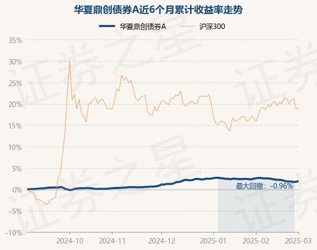 证券之星消息,3月3日,华夏鼎创债券A最新单位净值为1.0255元,累计净值为1.0615元,较前一交易日上涨0.12%。历史数据显示该基金近1个月下跌0.58%,近3个月上涨0.77%,近6个月上涨1.9%,近1年上涨4.42%。该基金近6个月的累计收益率走势如下图: