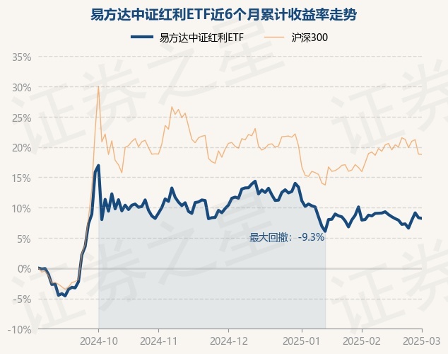 证券之星消息,3月3日,易方达中证红利ETF最新单位净值为1.3156元,累计净值为1.5866元,较前一交易日下跌0.11%。历史数据显示该基金近1个月下跌1.72%,近3个月下跌2.98%,近6个月上涨8.17%,近1年上涨3.28%。该基金近6个月的累计收益率走势如下图: