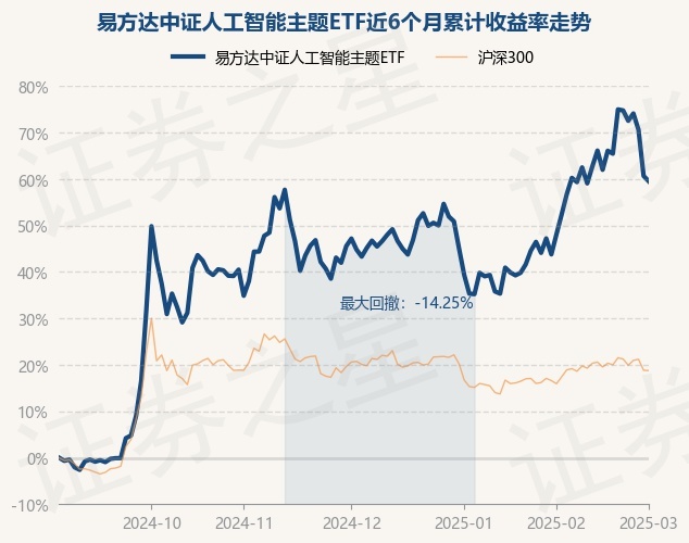 证券之星消息,3月3日,易方达中证人工智能主题ETF最新单位净值为0.999元,累计净值为0.999元,较前一交易日下跌0.72%。历史数据显示该基金近1个月上涨10.94%,近3个月上涨10.16%,近6个月上涨59.51%,近1年上涨29.57%。该基金近6个月的累计收益率走势如下图: