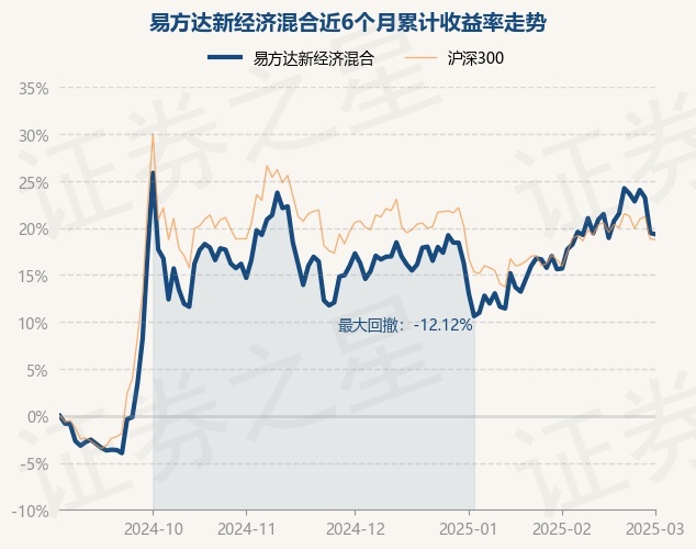 证券之星消息,3月3日,易方达新经济混合最新单位净值为3.34元,累计净值为3.34元,较前一交易日下跌0.12%。历史数据显示该基金近1个月上涨3.21%,近3个月上涨2.64%,近6个月上涨19.33%,近1年上涨7.09%。该基金近6个月的累计收益率走势如下图: