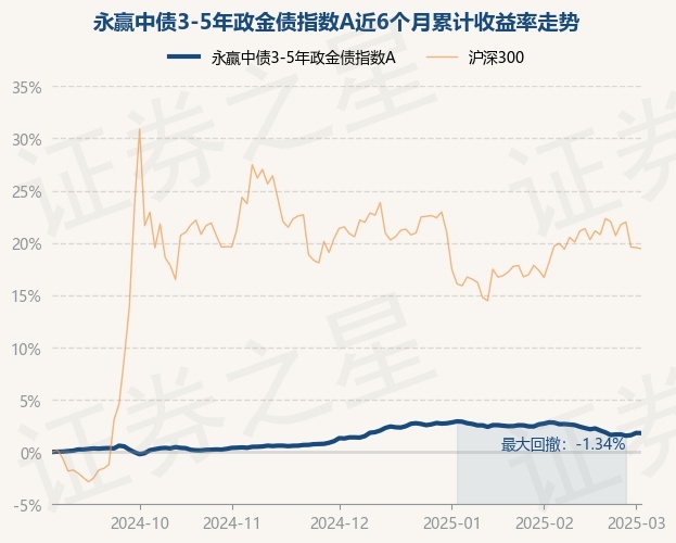 证券之星消息,3月4日,永赢中债3-5年政金债指数A最新单位净值为1.1033元,累计净值为1.1683元,较前一交易日下跌0.02%。历史数据显示该基金近1个月下跌0.82%,近3个月上涨0.4%,近6个月上涨1.8%,近1年上涨4.89%。该基金近6个月的累计收益率走势如下图: