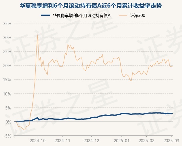 华夏稳享增利6个月滚动持有债A为债券型-混合二级基金,根据最新一期基金季报显示,该基金资产配置:股票占净值比5.29%,债券占净值比98.06%,现金占净值比0.66%。基金十大重仓股如下: