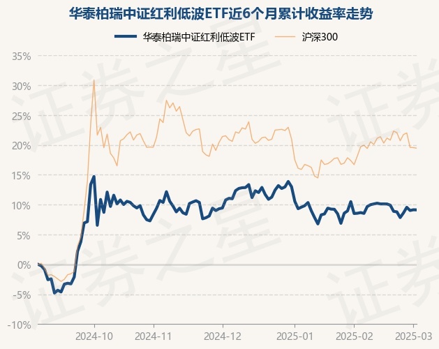 证券之星消息,3月4日,华泰柏瑞中证红利低波ETF最新单位净值为1.0828元,累计净值为2.1656元,较前一交易日下跌0.02%。历史数据显示该基金近1个月下跌1.25%,近3个月下跌1.74%,近6个月上涨9.12%,近1年上涨7.18%。该基金近6个月的累计收益率走势如下图: