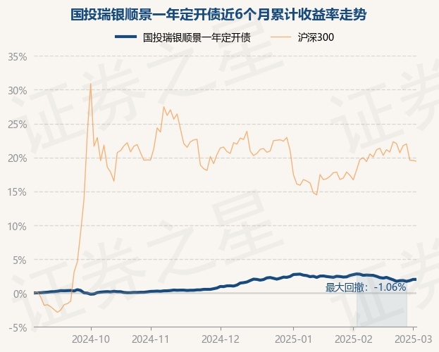 证券之星消息,3月4日,国投瑞银顺景一年定开债最新单位净值为1.0624元,累计净值为1.1224元,较前一交易日上涨0.0%。历史数据显示该基金近1个月下跌0.61%,近3个月上涨0.9%,近6个月上涨1.96%,近1年上涨4.06%。该基金近6个月的累计收益率走势如下图: