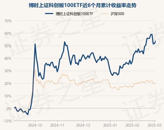证券之星消息,3月4日,博时上证科创板100ETF最新单位净值为1.0252元,累计净值为1.0252元,较前一交易日上涨1.33%。历史数据显示该基金近1个月上涨13.52%,近3个月上涨10.32%,近6个月上涨53.63%,近1年上涨21.7%。该基金近6个月的累计收益率走势如下图:
