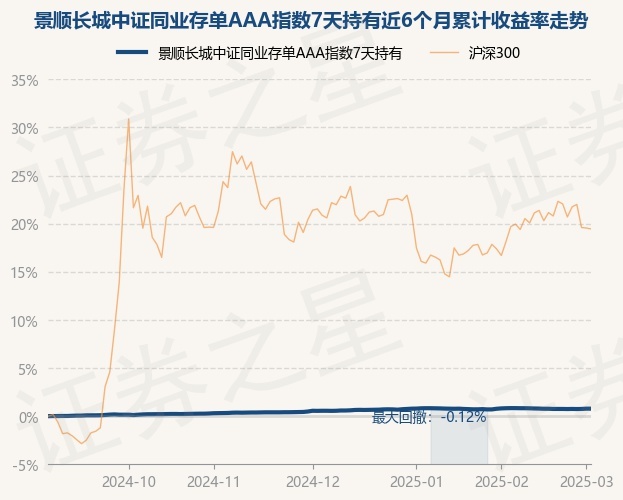 证券之星消息,3月4日,景顺长城中证同业存单AAA指数7天持有最新单位净值为1.0633元,累计净值为1.0633元,较前一交易日上涨0.0%。历史数据显示该基金近1个月上涨0.02%,近3个月上涨0.23%,近6个月上涨0.79%,近1年上涨1.9%。该基金近6个月的累计收益率走势如下图: