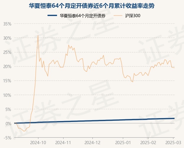 证券之星消息,3月4日,华夏恒泰64个月定开债券最新单位净值为1.0269元,累计净值为1.1854元,较前一交易日上涨0.01%。历史数据显示该基金近1个月上涨0.29%,近3个月上涨0.8%,近6个月上涨1.68%,近1年上涨3.53%。该基金近6个月的累计收益率走势如下图: