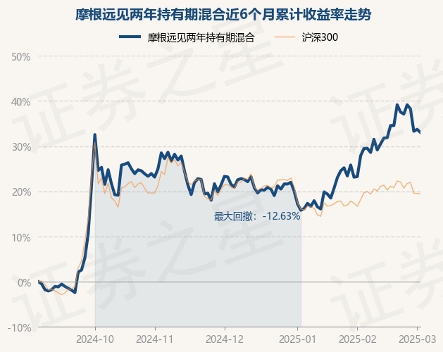 证券之星消息,3月4日,摩根远见两年持有期混合最新单位净值为0.7993元,累计净值为0.7993元,较前一交易日下跌0.51%。历史数据显示该基金近1个月上涨8.03%,近3个月上涨9.45%,近6个月上涨33.04%,近1年上涨23.63%。该基金近6个月的累计收益率走势如下图: