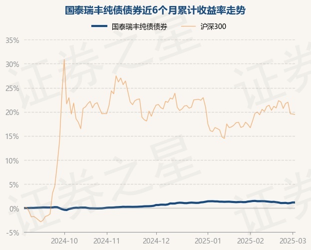 证券之星消息,3月4日,国泰瑞丰纯债债券最新单位净值为1.0078元,累计净值为1.0868元,较前一交易日上涨0.0%。历史数据显示该基金近1个月下跌0.18%,近3个月上涨0.46%,近6个月上涨1.17%,近1年上涨2.81%。该基金近6个月的累计收益率走势如下图: