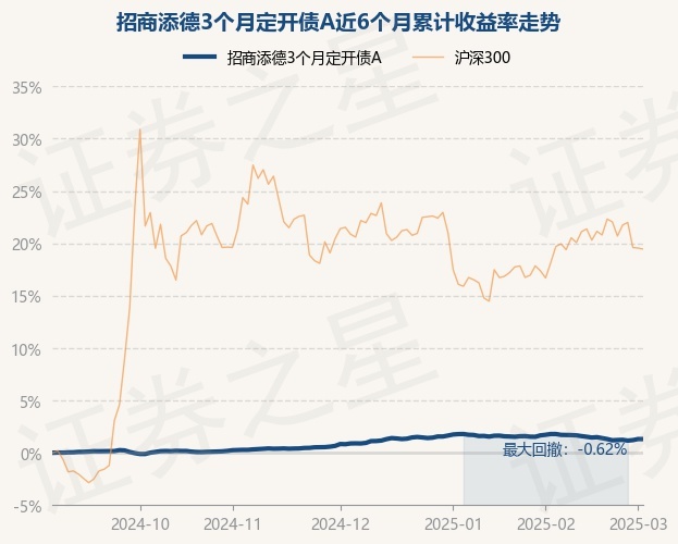 证券之星消息,3月4日,招商添德3个月定开债A最新单位净值为1.1133元,累计净值为1.3329元,较前一交易日上涨0.0%。历史数据显示该基金近1个月下跌0.35%,近3个月上涨0.42%,近6个月上涨1.31%,近1年上涨3.42%。该基金近6个月的累计收益率走势如下图: