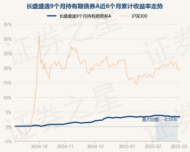 证券之星消息,3月4日,长盛盛逸9个月持有期债券A最新单位净值为1.0567元,累计净值为1.0896元,较前一交易日下跌0.02%。历史数据显示该基金近1个月下跌0.17%,近3个月上涨1.28%,近6个月上涨3.37%,近1年上涨5.03%。该基金近6个月的累计收益率走势如下图: