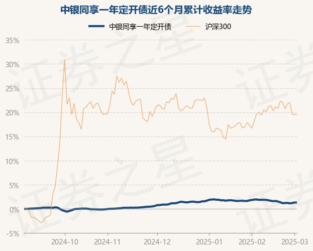 证券之星消息,3月4日,中银同享一年定开债最新单位净值为1.158元,累计净值为1.158元,较前一交易日下跌0.01%。历史数据显示该基金近1个月下跌0.46%,近3个月上涨0.44%,近6个月上涨1.31%,近1年上涨3.58%。该基金近6个月的累计收益率走势如下图: