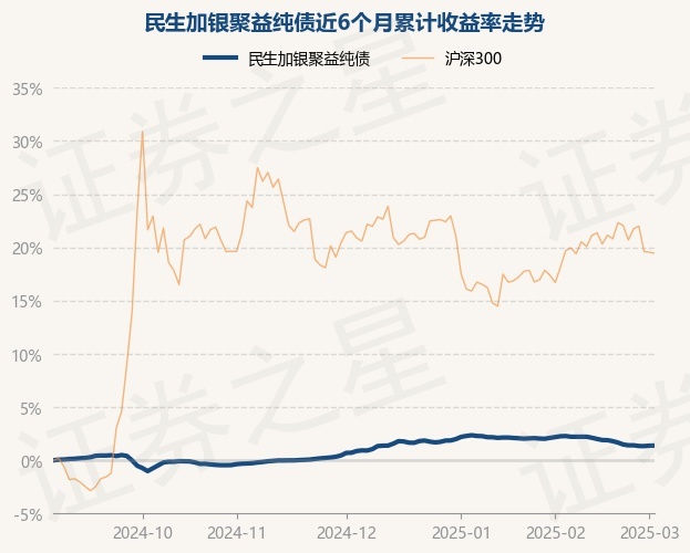 证券之星消息,3月4日,民生加银聚益纯债最新单位净值为1.0738元,累计净值为1.1889元,较前一交易日上涨0.01%。历史数据显示该基金近1个月下跌0.71%,近3个月上涨0.51%,近6个月上涨1.38%,近1年上涨3.8%。该基金近6个月的累计收益率走势如下图: