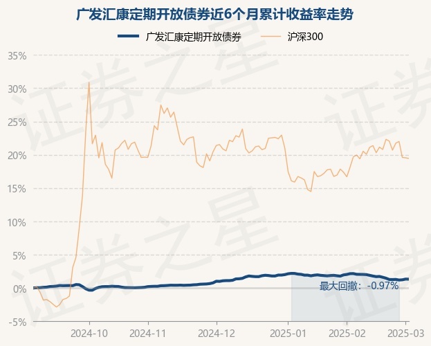 证券之星消息,3月4日,广发汇康定期开放债券最新单位净值为1.0388元,累计净值为1.2566元,较前一交易日下跌0.01%。历史数据显示该基金近1个月下跌0.63%,近3个月上涨0.24%,近6个月上涨1.32%,近1年上涨3.91%。该基金近6个月的累计收益率走势如下图: