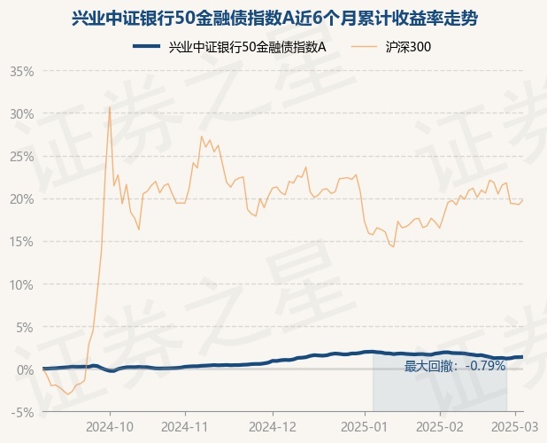证券之星消息,3月5日,兴业中证银行50金融债指数A最新单位净值为1.0884元,累计净值为1.1874元,较前一交易日上涨0.03%。历史数据显示该基金近1个月下跌0.45%,近3个月上涨0.34%,近6个月上涨1.38%,近1年上涨3.54%。该基金近6个月的累计收益率走势如下图: