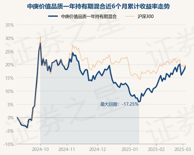 证券之星消息,3月5日,中庚价值品质一年持有期混合最新单位净值为1.5079元,累计净值为1.5079元,较前一交易日上涨1.06%。历史数据显示该基金近1个月上涨6.75%,近3个月上涨2.99%,近6个月上涨19.2%,近1年上涨17.48%。该基金近6个月的累计收益率走势如下图: