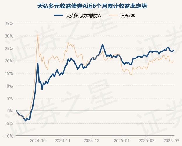 证券之星消息,3月5日,天弘多元收益债券A最新单位净值为1.2111元,累计净值为1.2111元,较前一交易日上涨0.23%。历史数据显示该基金近1个月上涨2.13%,近3个月上涨2.71%,近6个月上涨24.15%,近1年上涨16.98%。该基金近6个月的累计收益率走势如下图: