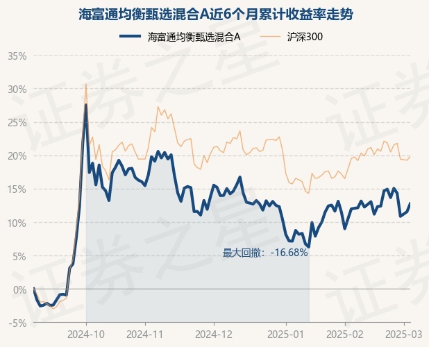 证券之星消息,3月5日,海富通均衡甄选混合A最新单位净值为0.8685元,累计净值为0.8685元,较前一交易日上涨1.07%。历史数据显示该基金近1个月上涨3.43%,近3个月下跌1.09%,近6个月上涨12.73%,近1年上涨4.95%。该基金近6个月的累计收益率走势如下图: