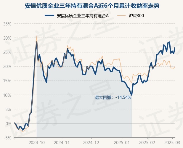 证券之星消息,3月5日,安信优质企业三年持有混合A最新单位净值为0.8642元,累计净值为0.8642元,较前一交易日上涨1.65%。历史数据显示该基金近1个月上涨10.13%,近3个月上涨7.98%,近6个月上涨26.51%,近1年上涨23.19%。该基金近6个月的累计收益率走势如下图: