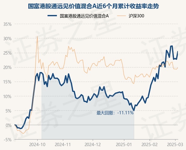 证券之星消息,3月5日,国富港股通远见价值混合A最新单位净值为0.7511元,累计净值为0.7511元,较前一交易日上涨2.12%。历史数据显示该基金近1个月上涨12.29%,近3个月上涨14.43%,近6个月上涨25.33%,近1年上涨27.54%。该基金近6个月的累计收益率走势如下图: